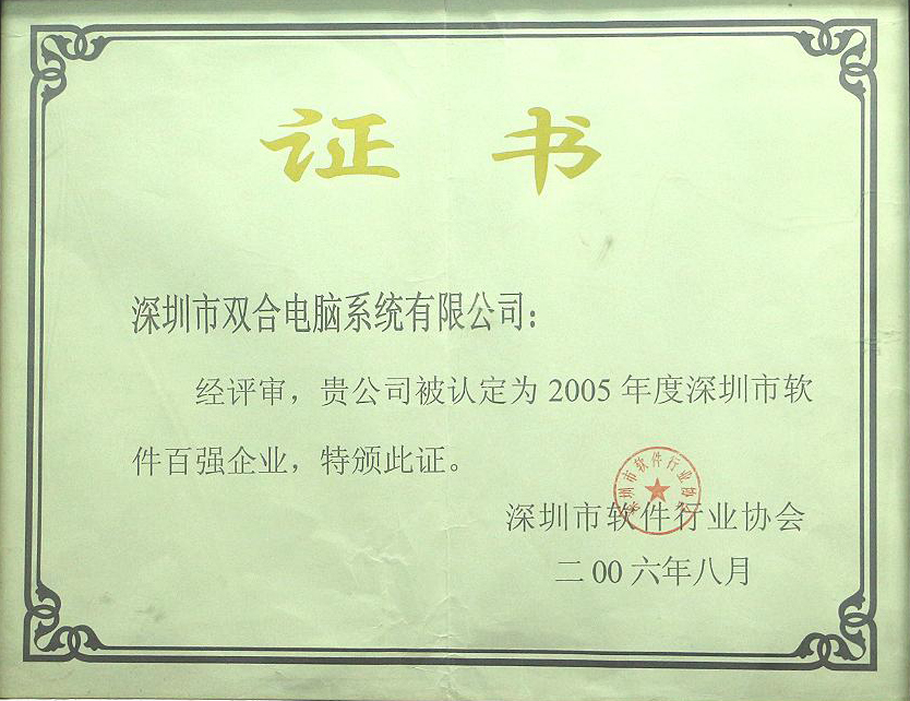 2005年度深圳市软件百强����� �������Ƴ������������ �������Ƴ������������ �������Ƴ����������� �������Ƴ�������企业证书